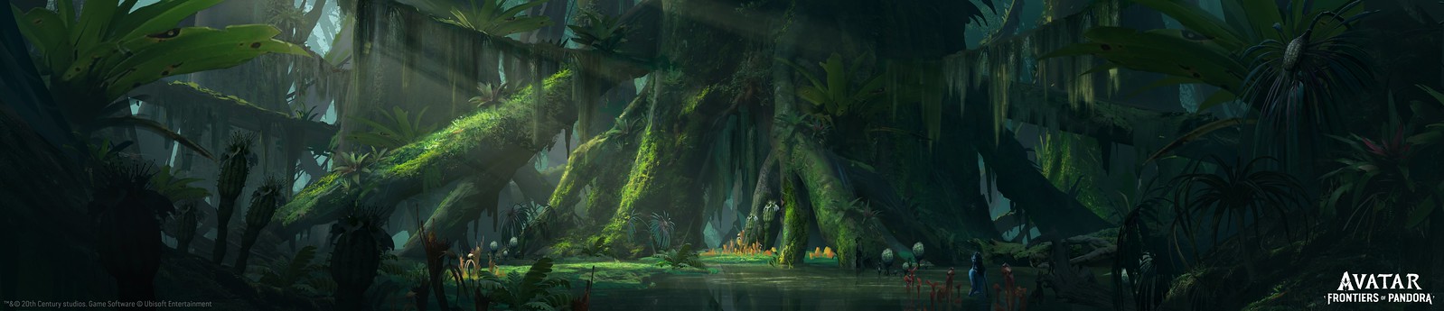 The goal for the teams at Massive and Ubisoft has always been to build upon the existing Avatar lore, allowing players to experience never-before-seen parts of Pandora firsthand. In order to do that the dev team worked closely with Lightstorm to comply to the logic of the Avatar universe. There were cultural Na’vi guidelines to abide by such as no written language nor monetary system. In addition to this, Na’vi follow Eywa’s three laws: You shall not set stone upon stone, neither use the turning wheel, nor use the metals from the ground. There were also broader guidelines for world building: Pandora being a metaphor for Earth must feel alien, yet familiar. Everything should be grounded in science, that is why the team refers to “science-fact” rather than ” science-fiction”. Finally, the world must feel epic in scale, and always combine elements of wonder and danger.