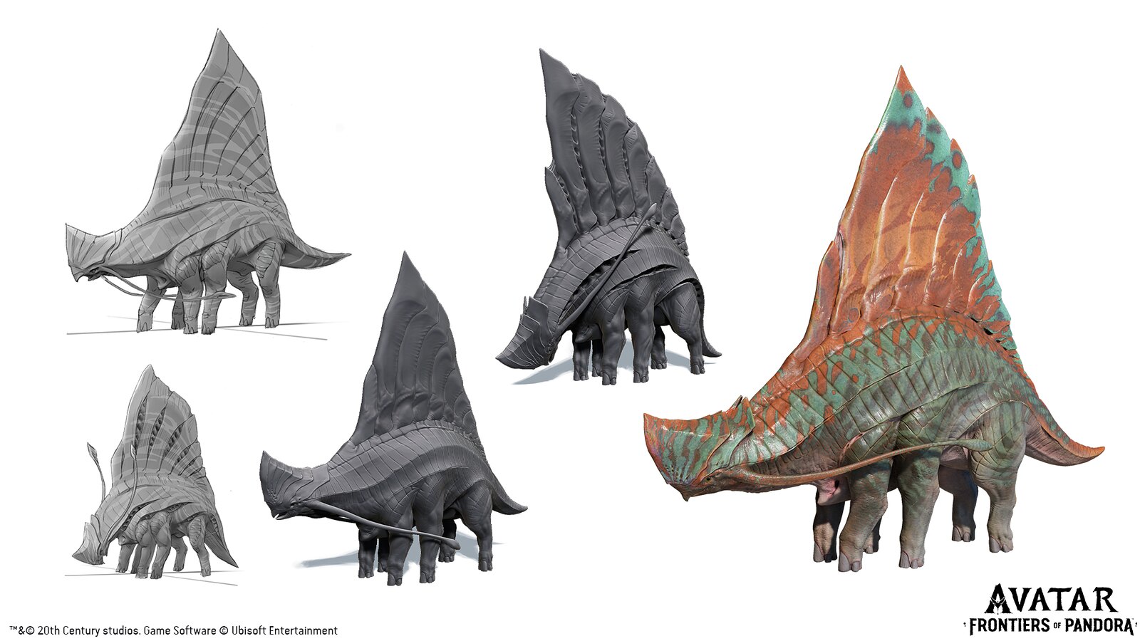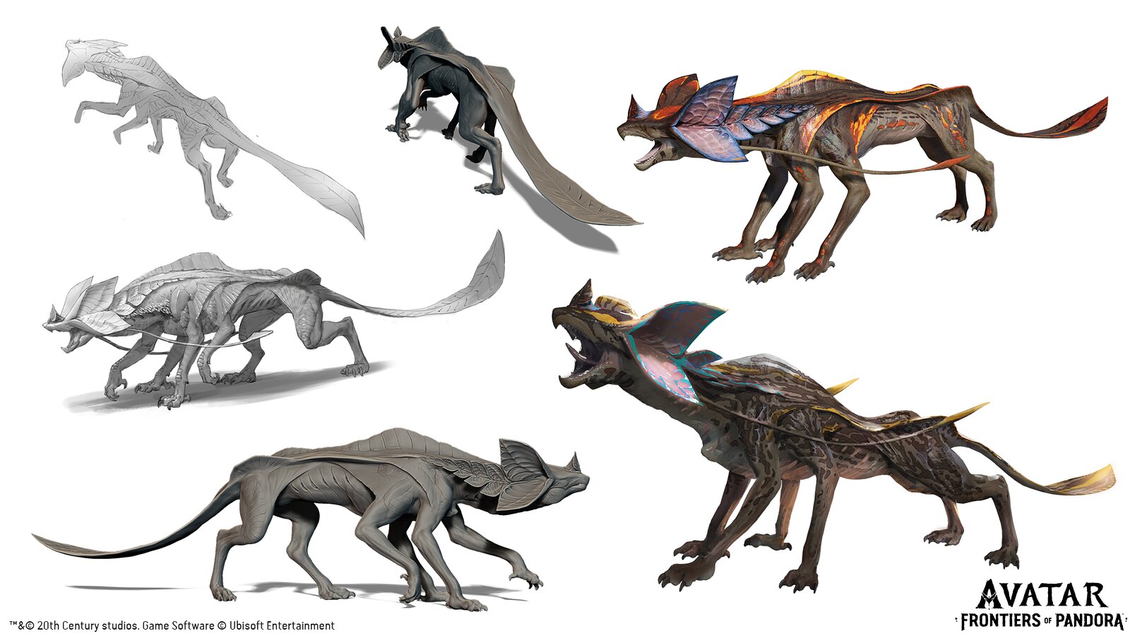 As an example, the Echo Stalker lives in the Clouded Forest, a misty and mysterious region where creatures developed particular behaviors around hiding, as well as unique detection abilities. The Echo Stalker is a blind animal using echo-location to hunt. It’s the regional evolution of the Viperwolf, created by James Cameron’s teams for the rainforest of the first Avatar film. The bat was also an obvious terrestrial reference for this predator.